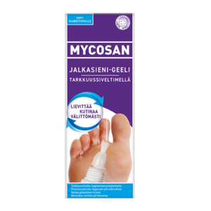 Jalkasientä voidaan hoitaa tehokkaasti Mycosan Jalkasienen hoito -geelillä. Geeli on helppo ja hygieeninen levittää tuubin ja siveltimen avulla. Se lievittää nopeasti kutinaa ja punoitusta. Jalkasienen paraneminen kestää kuitenkin useita viikkoja. Siksi on tärkeää jatkaa hoitoa, vaikka iho-oireet eivät enää olisi näkyvissä.